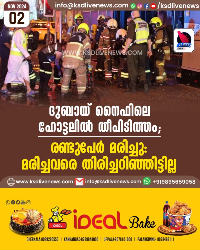 ദുബായ് നൈഫിലെ ഹോട്ടലില് തീപിടിത്തം; രണ്ടുപേർ മരിച്ചു: മരിച്ചവരെ തിരിച്ചറിഞ്ഞിട്ടില്ല