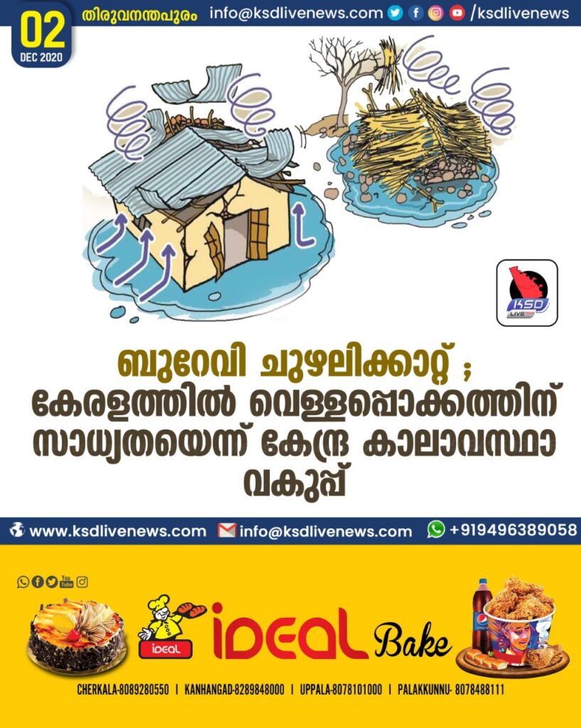 ബുറേവി ചുഴലിക്കാറ്റ് ; കേരളത്തിൽ വെള്ളപ്പൊക്കത്തിന് സാധ്യതയെന്ന് കേന്ദ്ര കാലാവസ്ഥാ വകുപ്പ്