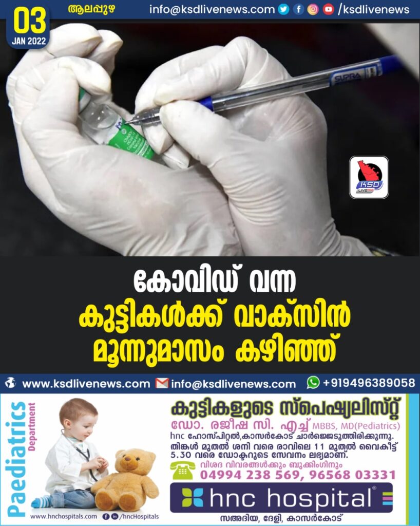 കോവിഡ് വന്ന കുട്ടികൾക്ക് വാക്സിൻ മൂന്നുമാസം കഴിഞ്ഞ്