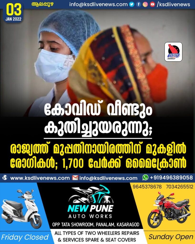 കോവിഡ് വീണ്ടും കുതിച്ചുയരുന്നു; രാജ്യത്ത് മുപ്പതിനായിരത്തിന് മുകളില് രോഗികള്; 1,700 പേര്ക്ക് ഒമൈക്രോണ്