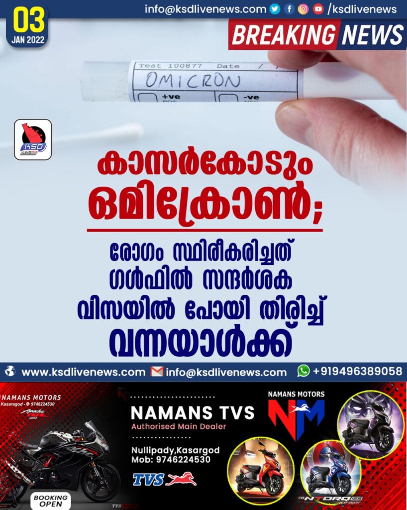 കാസർകോടും ഒമിക്രോൺ; രോഗം സ്ഥിരീകരിച്ചത് ഗൾഫിൽ സന്ദർശക വിസയിൽ പോയി തിരിച്ച് വന്നയാള്ക്ക്