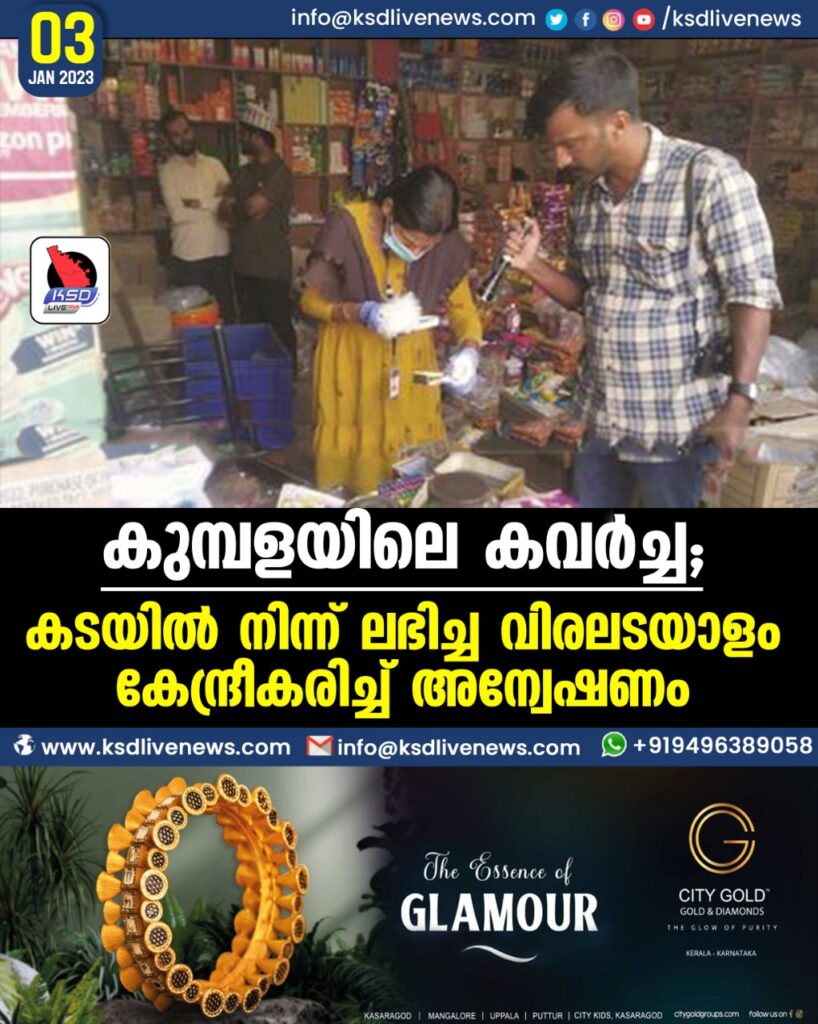 കുമ്പളയിലെ കവര്‍ച്ച; കടയില്‍ നിന്ന് ലഭിച്ച വിരലടയാളം കേന്ദ്രീകരിച്ച് അന്വേഷണം