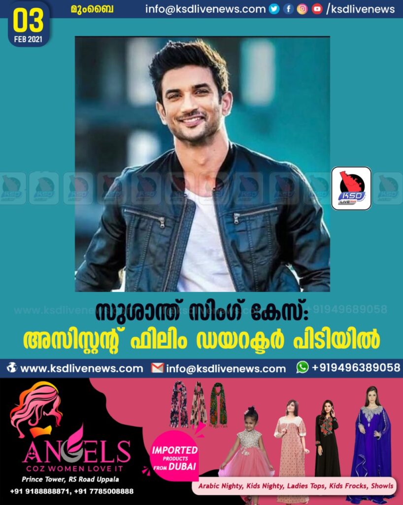സുശാന്ത് സിംഗ് കേസ് : അസിസ്റ്റന്റ് ഫിലിം ഡയറക്ടർ പിടിയിൽ