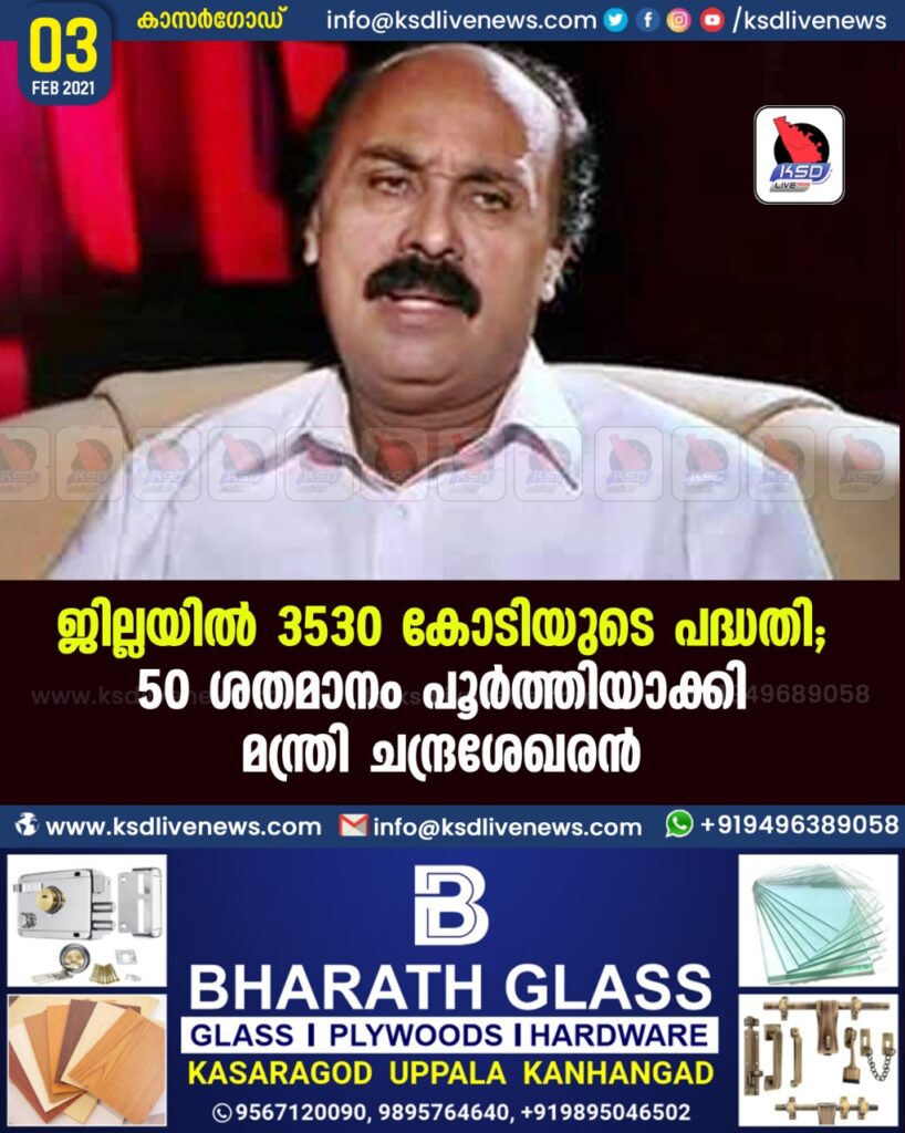 ജില്ലയിൽ 3530 കോടിയുടെ പദ്ധതി; 50 ശതമാനം പൂർത്തിയാക്കി -മന്ത്രി ചന്ദ്രശേഖരൻ