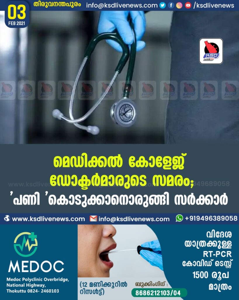 മെഡിക്കൽ കോളേജ് ഡോക്ടർമാരുടെ സമരം ; ‘ പണി ‘ കൊടുക്കാനൊരുങ്ങി സർക്കാർ