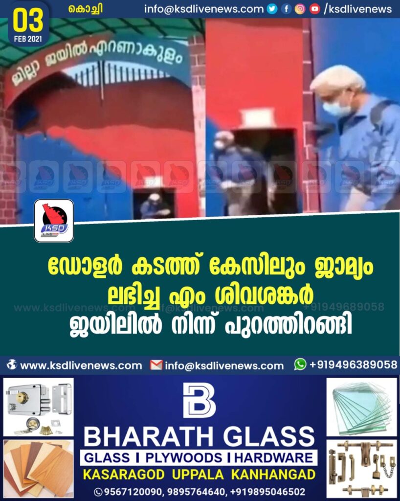ഡോളർ കടത്ത് കേസിലും ജാമ്യം ലഭിച്ച എം ശിവശങ്കർ ജയിലിൽ നിന്ന് പുറത്തിറങ്ങി