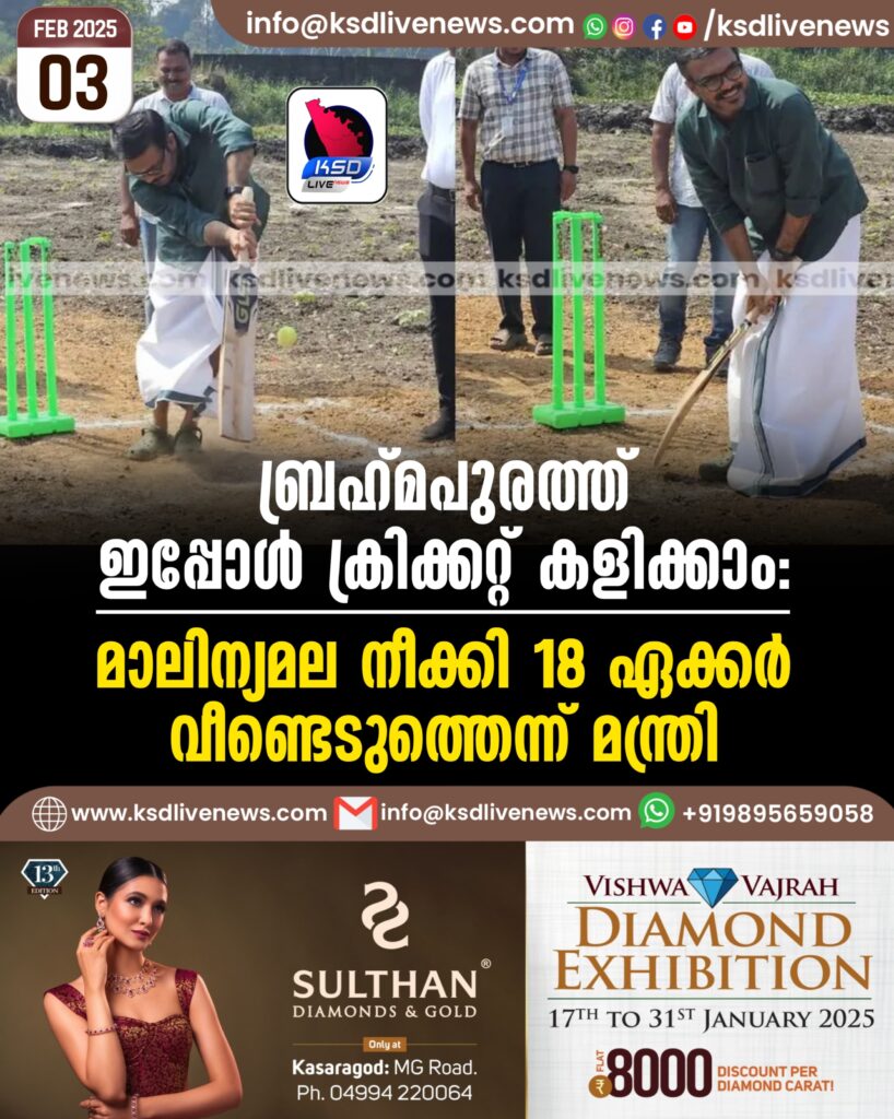 ബ്രഹ്മപുരത്ത് ഇപ്പോൾ ക്രിക്കറ്റ് കളിക്കാം’; മാലിന്യമല നീക്കി 18 ഏക്കർ വീണ്ടെടുത്തെന്ന് മന്ത്രി