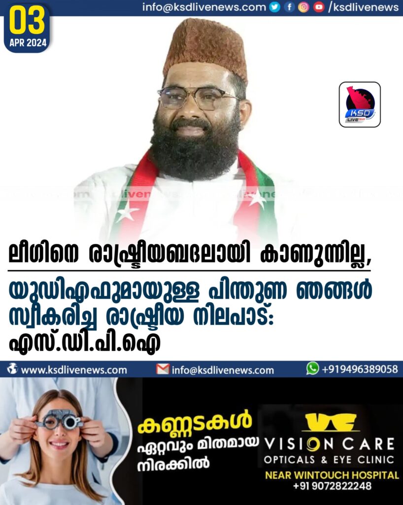 ലീഗിനെ രാഷ്ട്രീയബദലായി കാണുന്നില്ല, യുഡിഎഫുമായുള്ള പിന്തുണ ഞങ്ങള് സ്വീകരിച്ച രാഷ്ട്രീയ നിലപാട്: എസ്.ഡി.പി.ഐ