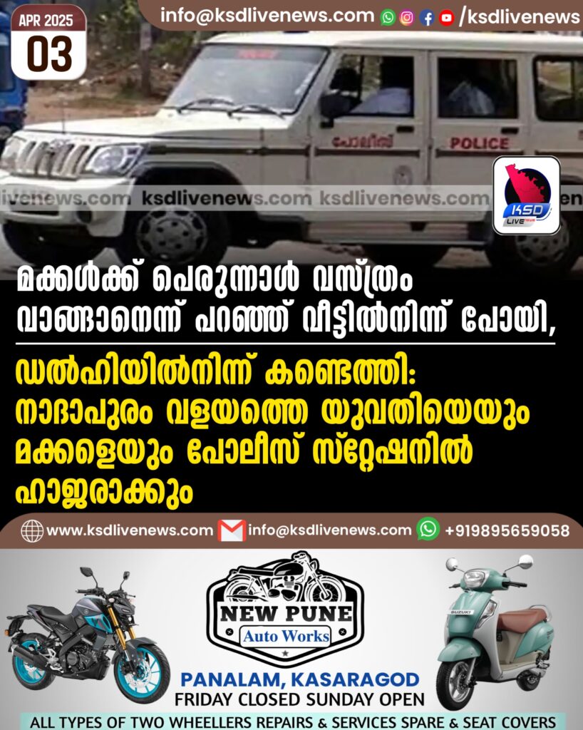മക്കള്ക്ക് പെരുന്നാള് വസ്ത്രം വാങ്ങാനെന്ന് പറഞ്ഞ് വീട്ടില്നിന്ന് പോയി, ഡല്ഹിയില്നിന്ന് കണ്ടെത്തി; നാദാപുരം വളയത്തെ യുവതിയെയും മക്കളെയും പോലീസ് സ്റ്റേഷനില് ഹാജരാക്കും