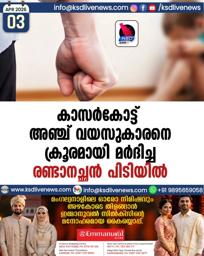കാസർകോട്ട് അഞ്ച് വയസുകാരനെ ക്രൂരമായി മർദിച്ച രണ്ടാനച്ഛൻ പിടിയിൽ