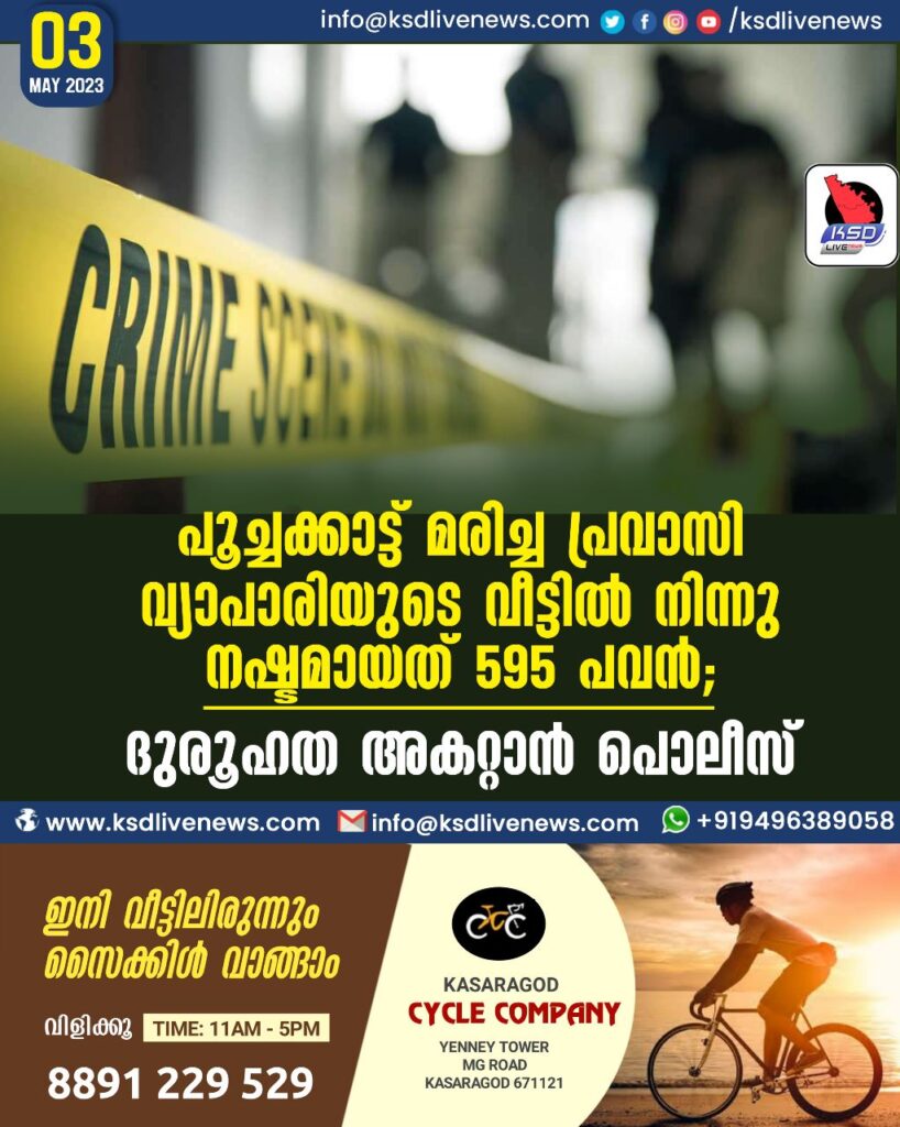 പൂച്ചക്കാട്ട് മരിച്ച പ്രവാസി വ്യാപാരിയുടെ വീട്ടിൽ നിന്നു നഷ്ടമായത് 595 പവൻ; ദുരൂഹത അകറ്റാൻ പൊലീസ്