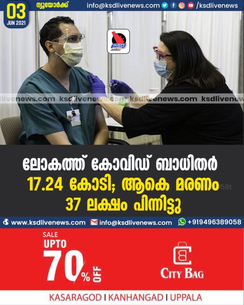 ലോകത്ത് കോവിഡ് ബാധിതര് 17.24 കോടി; ആകെ മരണം 37 ലക്ഷം പിന്നിട്ടു