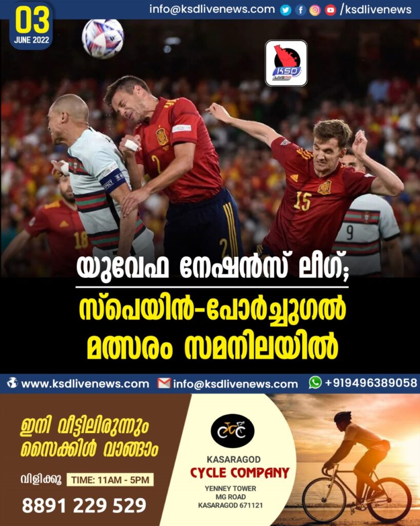 യുവേഫ നേഷന്സ് ലീഗ്; സ്പെയിന് – പോര്ച്ചുഗല് മത്സരം സമനിലയില്