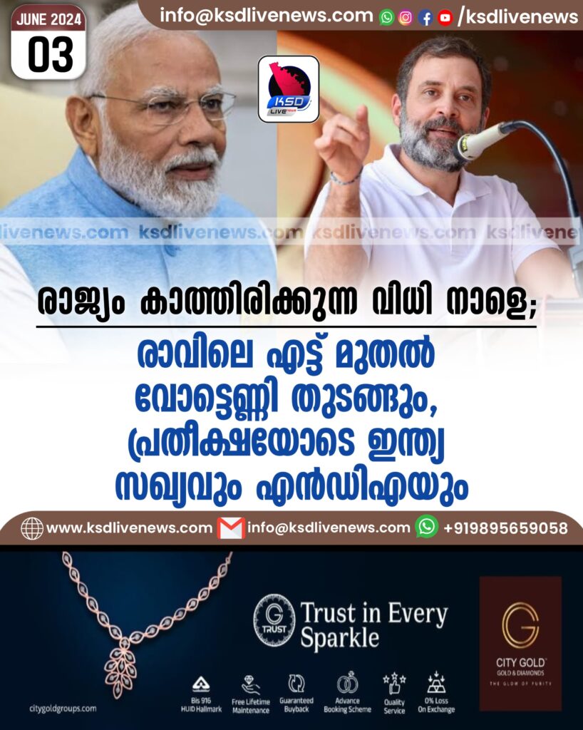 രാജ്യം കാത്തിരിക്കുന്ന വിധി നാളെ; രാവിലെ എട്ട് മുതൽ വോട്ടെണ്ണി തുടങ്ങും, പ്രതീക്ഷയോടെ ഇന്ത്യ സഖ്യവും എൻഡിഎയും