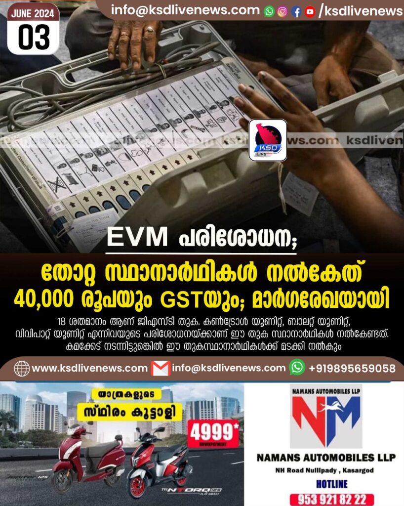 EVM പരിശോധന: തോറ്റ സ്ഥാനാര്‍ഥികള്‍ നല്‍കേണ്ടത് 40,000 രൂപയും GSTയും; മാര്‍ഗരേഖയായി