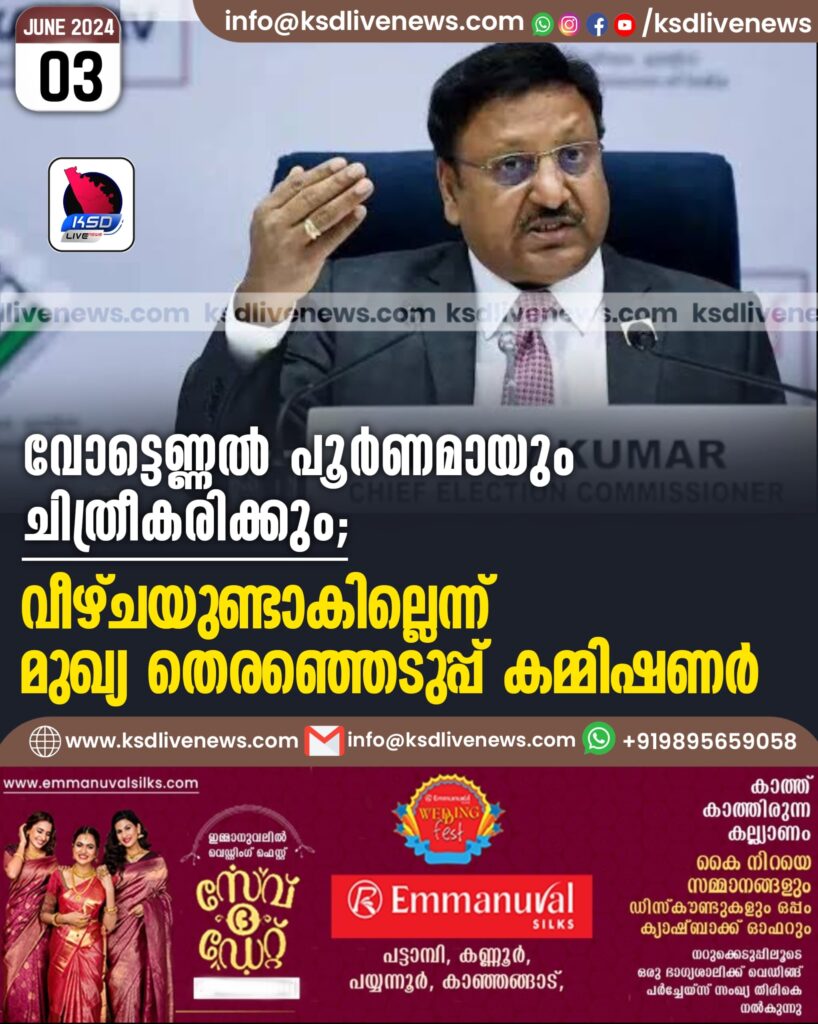 വോട്ടെണ്ണൽ പൂർണമായും ചിത്രീകരിക്കും; വീഴ്‌ചയുണ്ടാകില്ലെന്ന് മുഖ്യ തെരഞ്ഞെടുപ്പ് കമ്മിഷണർ