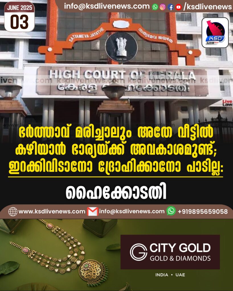 ഭർത്താവ് മരിച്ചാലും അതേ വീട്ടിൽ കഴിയാൻ ഭാര്യയ്ക്ക് അവകാശമുണ്ട്; ഇറക്കിവിടാനോ ദ്രോഹിക്കാനോ പാടില്ല: ഹൈക്കോടതി