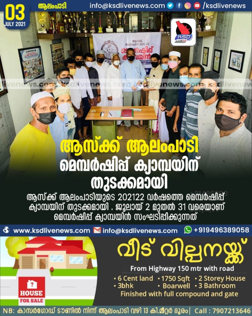 ആലംപാടി: സാമൂഹിക,സാംസ്കാരിക,കായിക,ജീവ കാരുണ്ണ്യ മേഖലകളിൽ നിരവധി നേട്ടങ്ങൾ കരസ്ഥമാക്കി സംസ്ഥാന-ജില്ലാ അവാർഡുകൾ നേടിയ ജില്ലയിലെ മികച്ച ക്ലബ്ബായ ആസ്ക്ക് ആലംപാടിയുടെ 2021-22 വർഷത്തെ മെമ്പർഷിപ്പ് ക്യാമ്പയിന് തുടക്കമായി .