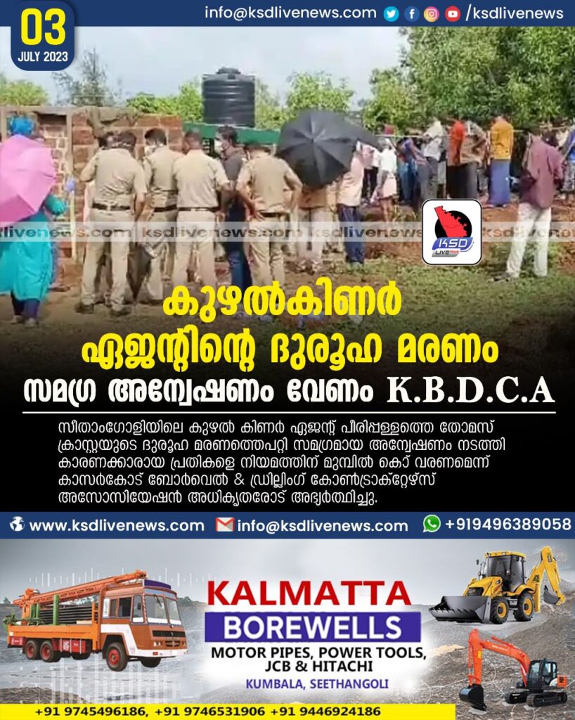 കുഴൽകിണർ ഏജന്റിന്റെ ദുരൂഹ മരണം സമഗ്ര അന്വേഷണം വേണം K.B.D.C.A