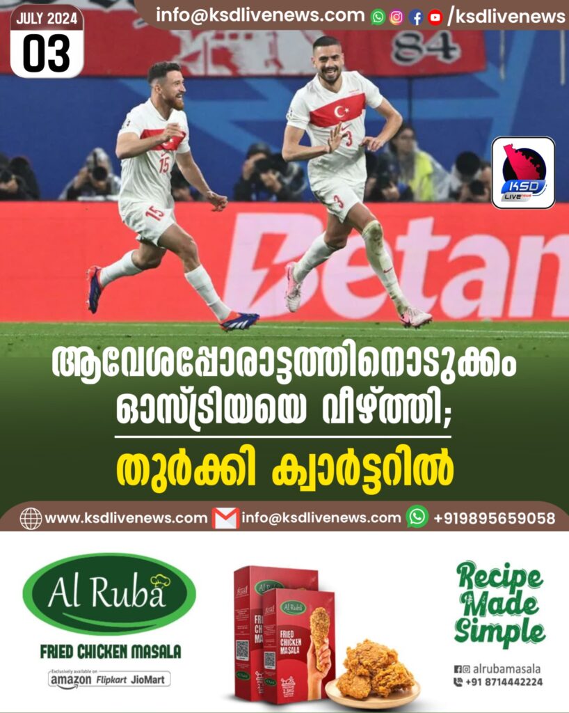 ആവേശപ്പോരാട്ടത്തിനൊടുക്കം ഓസ്ട്രിയയെ വീഴ്ത്തി; തുര്ക്കി ക്വാര്ട്ടറില്