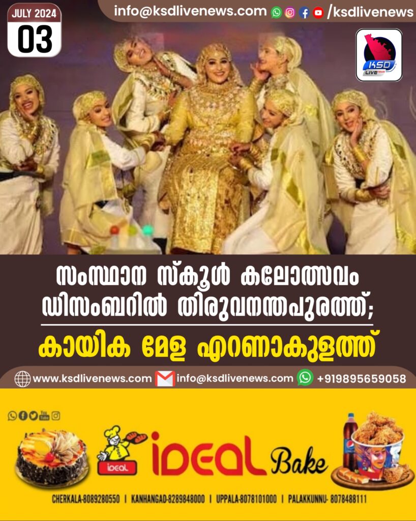 സംസ്ഥാന സ്കൂൾ കലോത്സവം ഡിസംബറിൽ തിരുവനന്തപുരത്ത്; കായിക മേള എറണാകുളത്ത്