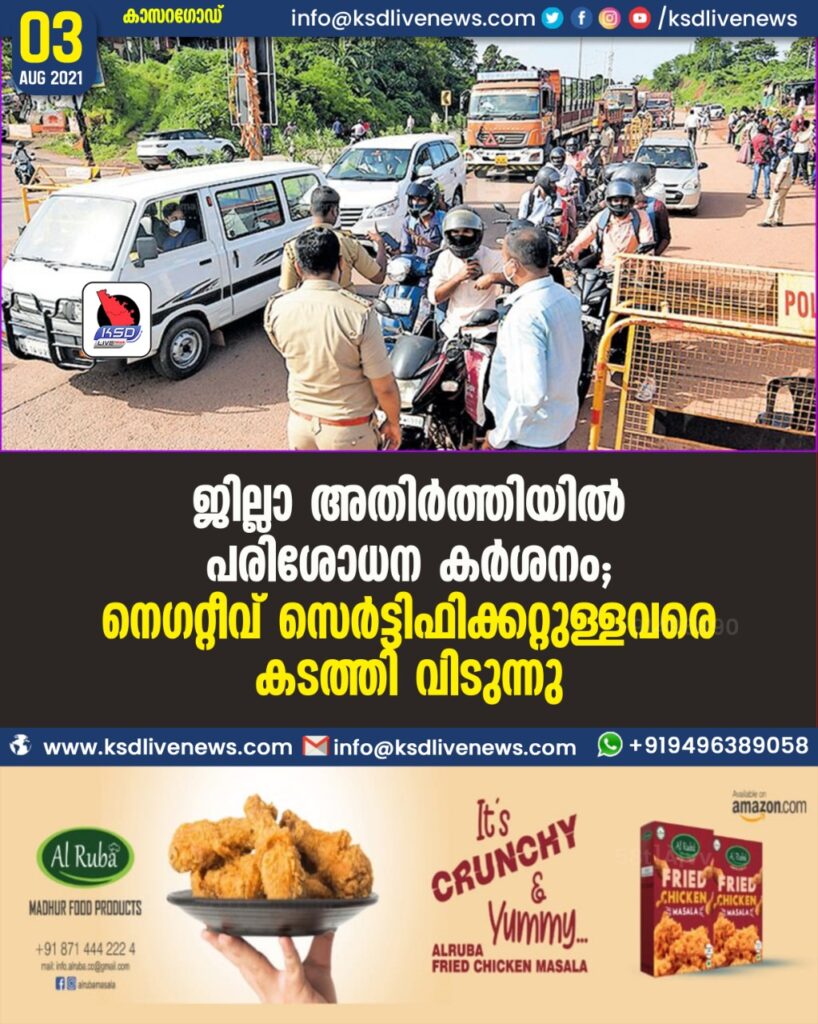 ജില്ലാ അതിർത്തിയിൽ പരിശോധന കർശനം; നെഗറ്റീവ് സെർട്ടിഫിക്കറ്റുള്ളവരെ കടത്തി വിടുന്നു