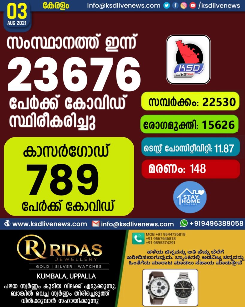 കോവിഡിൽ വിറച്ച് കേരളം ; സംസ്ഥാനത്ത് ഇന്ന് 23676 പേർക്ക് കോവിഡ് സ്ഥിരീകരിച്ചു. സമ്പർക്കം വഴി 22530 പേർക്കും ; ആശ്വാസമായി 15626 പേർക്ക് രോഗ മുക്തിയും ; കാസർഗോഡ് ജില്ലയിൽ 789 പേർക്ക് പുതിയ കോവിഡ് കേസുകൾ ; മരണം 148
