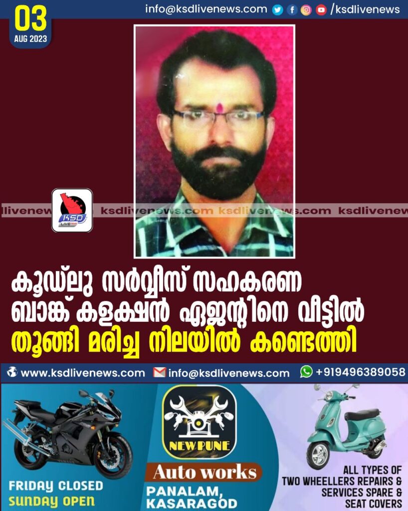 കൂഡ്ലു സര്വ്വീസ് സഹകരണ ബാങ്ക് കളക്ഷന് ഏജന്റിനെ വീട്ടില് തൂങ്ങി മരിച്ച നിലയില് കണ്ടെത്തി