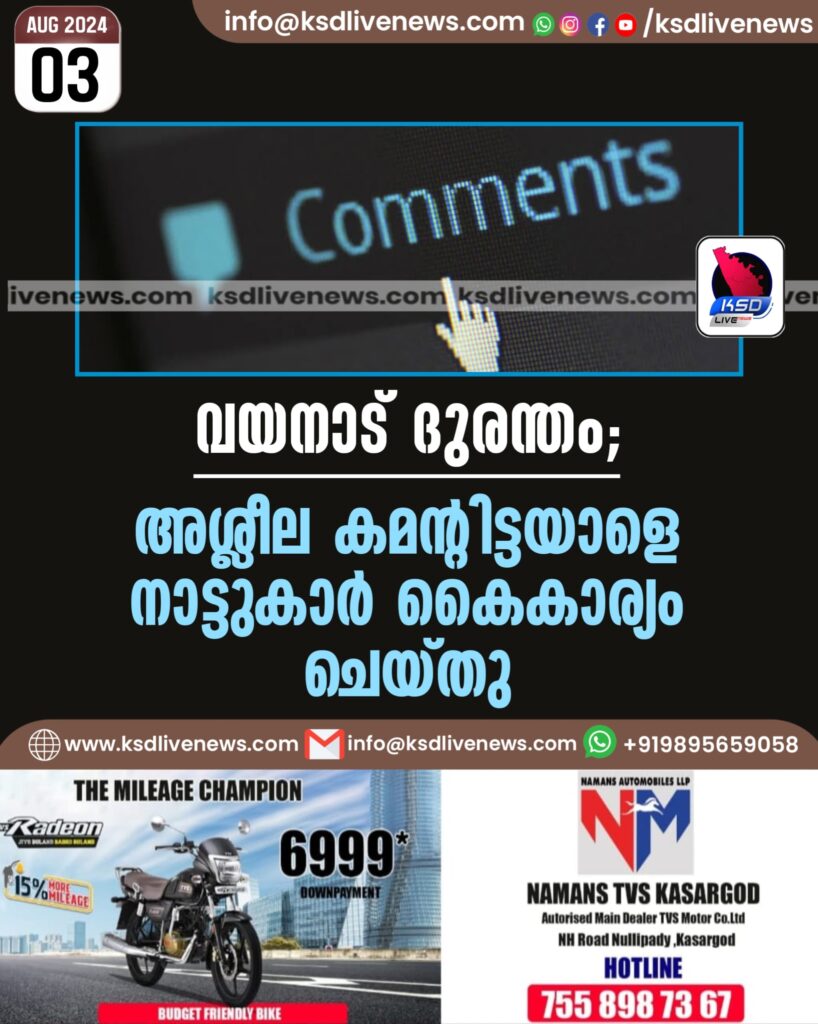 വയനാട് ദുരന്തം; അശ്ലീല കമന്റിട്ടയാളെ നാട്ടുകാർ കൈകാര്യം ചെയ്തു