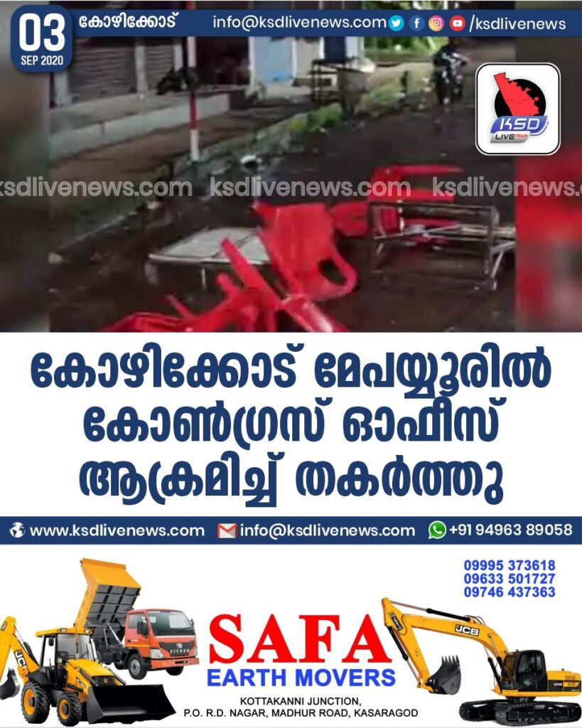 കോഴിക്കോട് മേപയ്യൂരിൽ കോൺഗ്രസ് ഓഫീസ് ആക്രമിച്ച് തകർത്തു