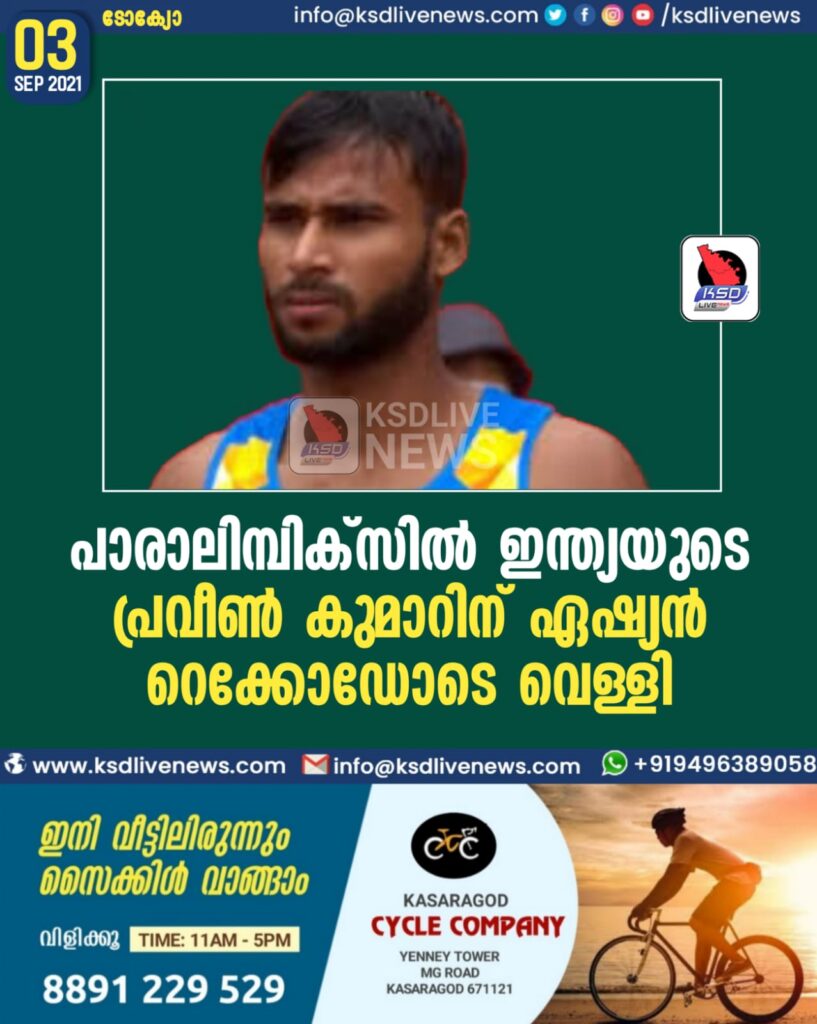 പാരാലിമ്പിക്സില് ഇന്ത്യയുടെ പ്രവീണ് കുമാറിന് ഏഷ്യന് റെക്കോഡോടെ വെള്ളി