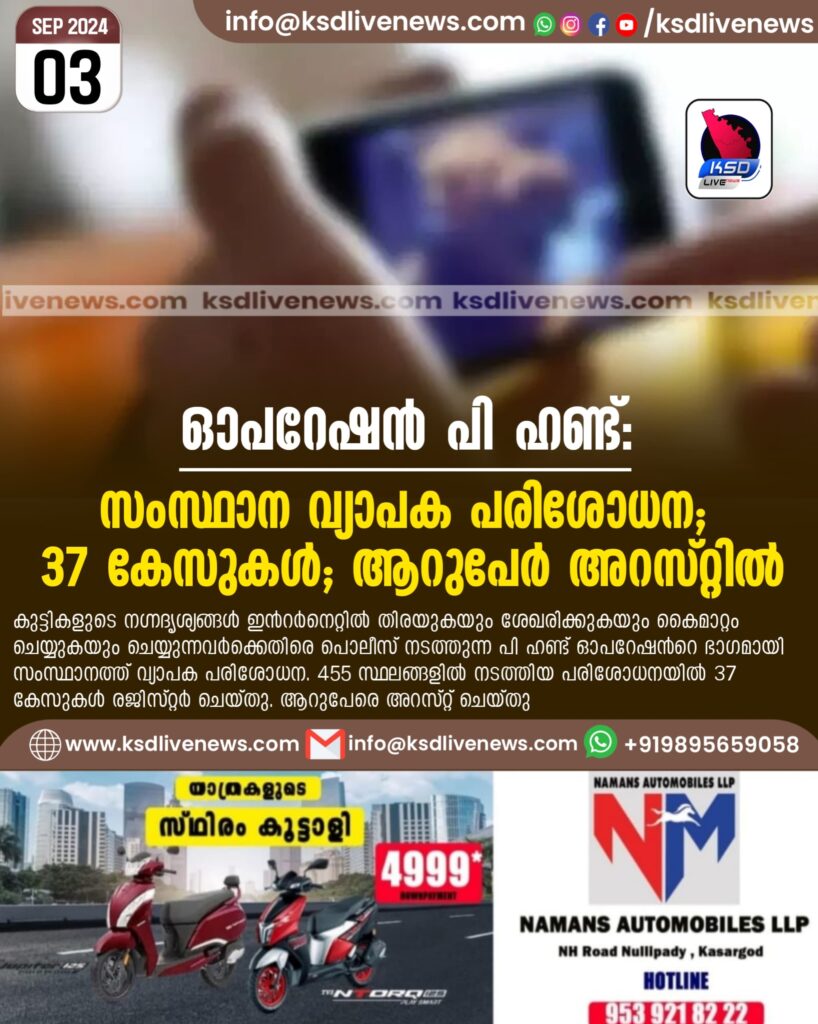 ഓപറേഷൻ പി ഹണ്ട്: സംസ്ഥാന വ്യാപക പരിശോധന; 37 കേസുകള്; ആറുപേര് അറസ്റ്റില്