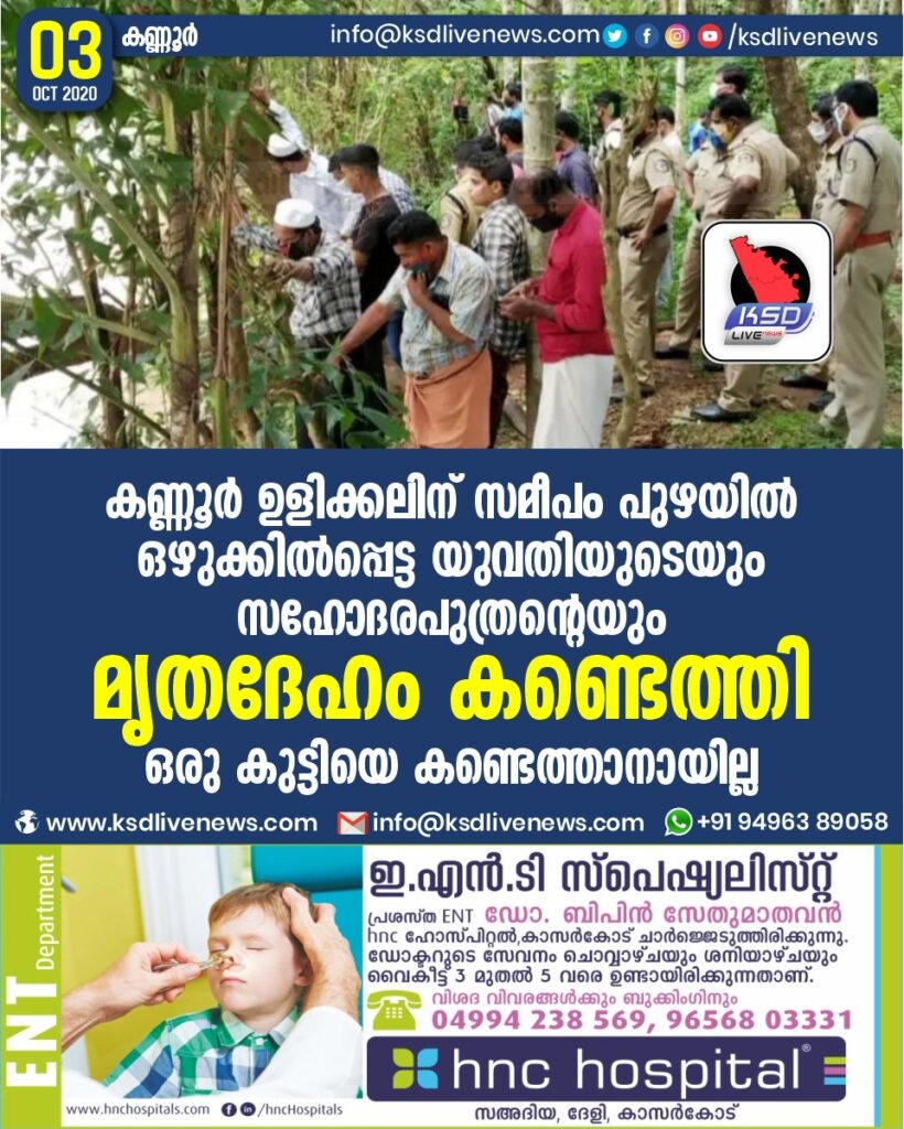 കണ്ണൂർ ഉളിക്കലിന് സമീപം പുഴയിൽ ഒഴുക്കിൽപ്പെട്ട യുവതിയുടെയും സഹോദരപുത്രന്റെയും മൃതദേഹം കണ്ടെത്തി ; ഒരു കുട്ടിയെ കണ്ടെത്താനായില്ല