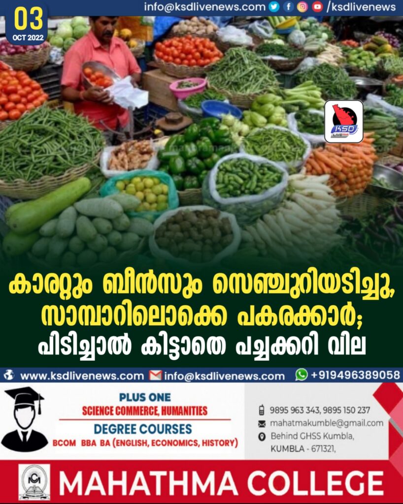കാരറ്റും ബീൻസും സെഞ്ചുറിയടിച്ചു, സാമ്പാറിലൊക്കെ പകരക്കാർ; പിടിച്ചാൽ കിട്ടാതെ പച്ചക്കറി വില