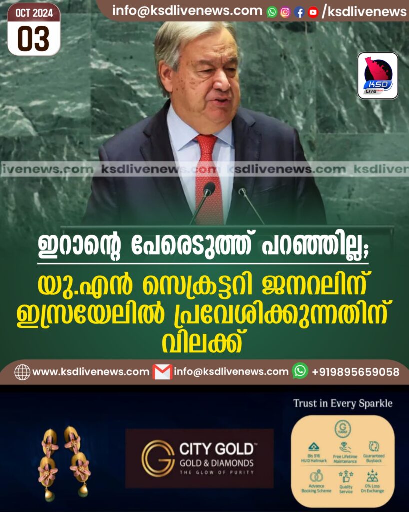 ഇറാന്റെ പേരെടുത്ത് പറഞ്ഞില്ല; യു.എന്‍ സെക്രട്ടറി ജനറലിന് ഇസ്രയേലില്‍ പ്രവേശിക്കുന്നതിന് വിലക്ക്