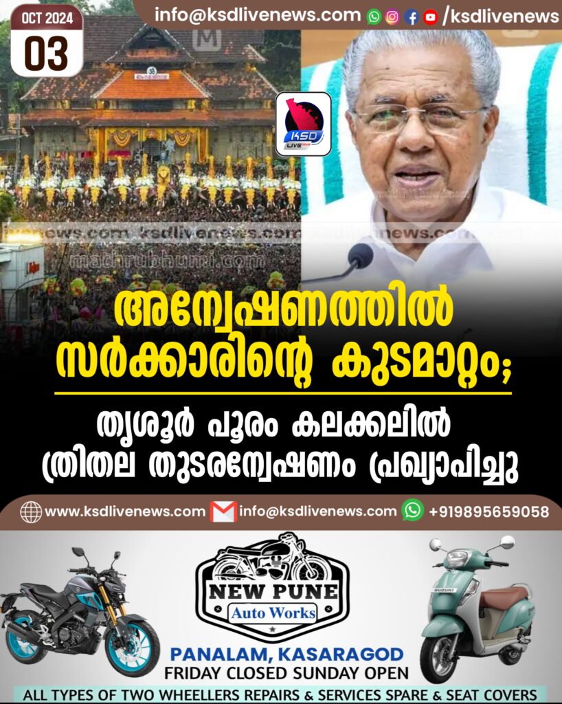 അന്വേഷണത്തില് സര്ക്കാരിന്റെ കുടമാറ്റം; തൃശൂര് പൂരം കലക്കലില് ത്രിതല തുടരന്വേഷണം പ്രഖ്യാപിച്ചു