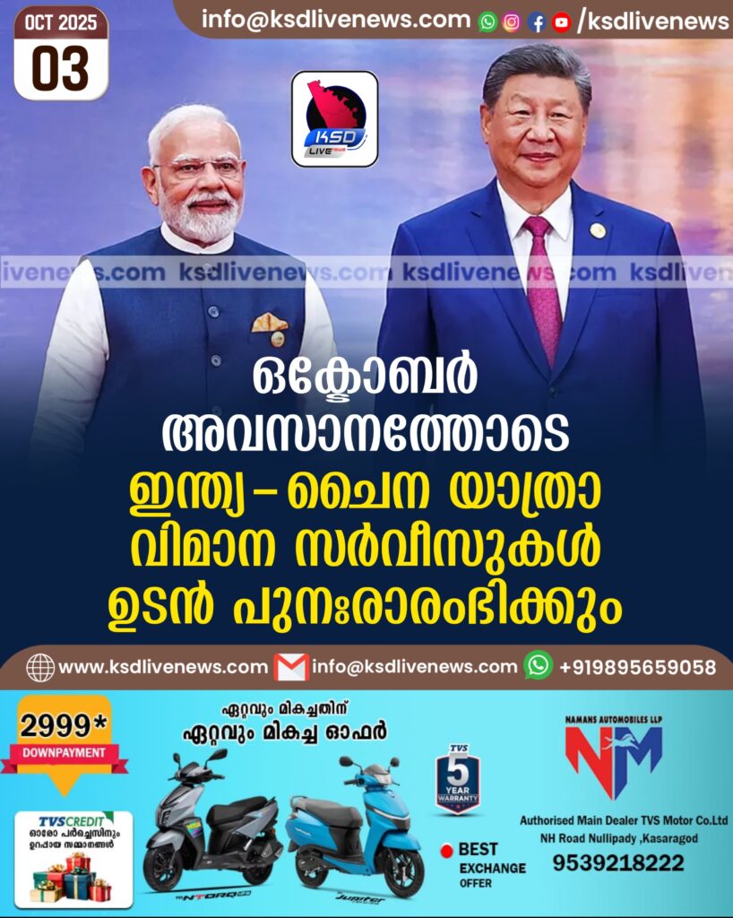 ഈ ചര്‍ച്ചയിലാണ് ഇന്ത്യയിലും ചൈനയിലുമുള്ള നിയുക്ത സ്ഥലങ്ങളെ ബന്ധിപ്പിക്കുന്ന നേരിട്ടുള്ള വിമാന സര്‍വീസുകള്‍ 2025 ഒക്ടോബര്‍ അവസാനത്തോടെ പുനരാരംഭിക്കാന്‍ കഴിയുമെന്ന് ധാരണയായിട്ടുള്ളതെന്ന് വിദേശകാര്യ മന്ത്രാലയം പുറത്തിറക്കിയ പ്രസ്താവനയില്‍ പറയുന്നു.