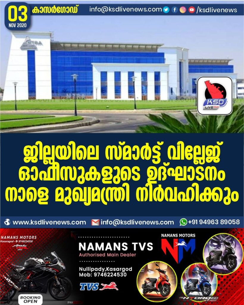 കാസർഗോഡ് : ചെറുവത്തൂർ, ചിത്താരി സ്മാർട്ട് വില്ലേജ് ഓഫീസ് കെട്ടിടങ്ങളുടെ പ്രവർത്തനോദ്ഘാടനം മുഖ്യമന്ത്രി പിണറായി വിജയൻ നാലിന് പകൽ 12 ന് വീഡിയോ കോൺഫറൻസിലൂടെ നിർവഹിക്കും. ജില്ലയ്ക്ക് പുതുതായി അനുവദിച്ച പഡ്രെ, തെക്കിൽ, കുഡ്ലു, തുരുത്തി, കാഞ്ഞങ്ങാട് സ്മാർട്ട് വില്ലേജ് ഓഫീസ് കെട്ടിടങ്ങളുടെ ശിലാസ്ഥാപനവും നിർവഹിക്കും. ജില്ലാ നിർമിതി കേന്ദ്രമാണ് സ്മാർട്ട് വില്ലേജ് ഓഫീസുകൾ നിർമാണം നടത്തിയത്. കലക്ടറേറ്റിലാണ് ചടങ്ങ് നടക്കുക. മന്ത്രി ഇ ചന്ദ്രശേഖരൻ അദ്ധ്യക്ഷനാവും.