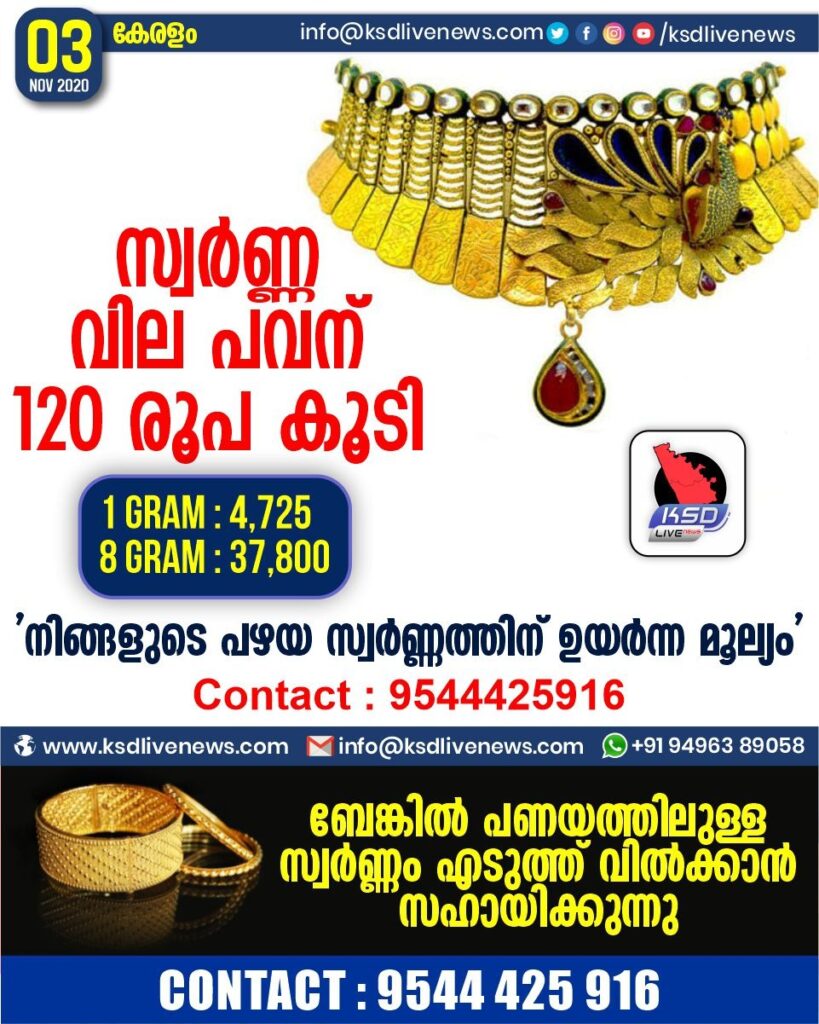 സ്വര്ണവില പവന് 120 രൂപകൂടി 37,800 രൂപയായി