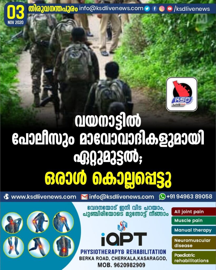 വയനാട്ടില് പോലീസും മാവോവാദികളുമായി ഏറ്റുമുട്ടല്; ഒരാള് കൊല്ലപ്പെട്ടു