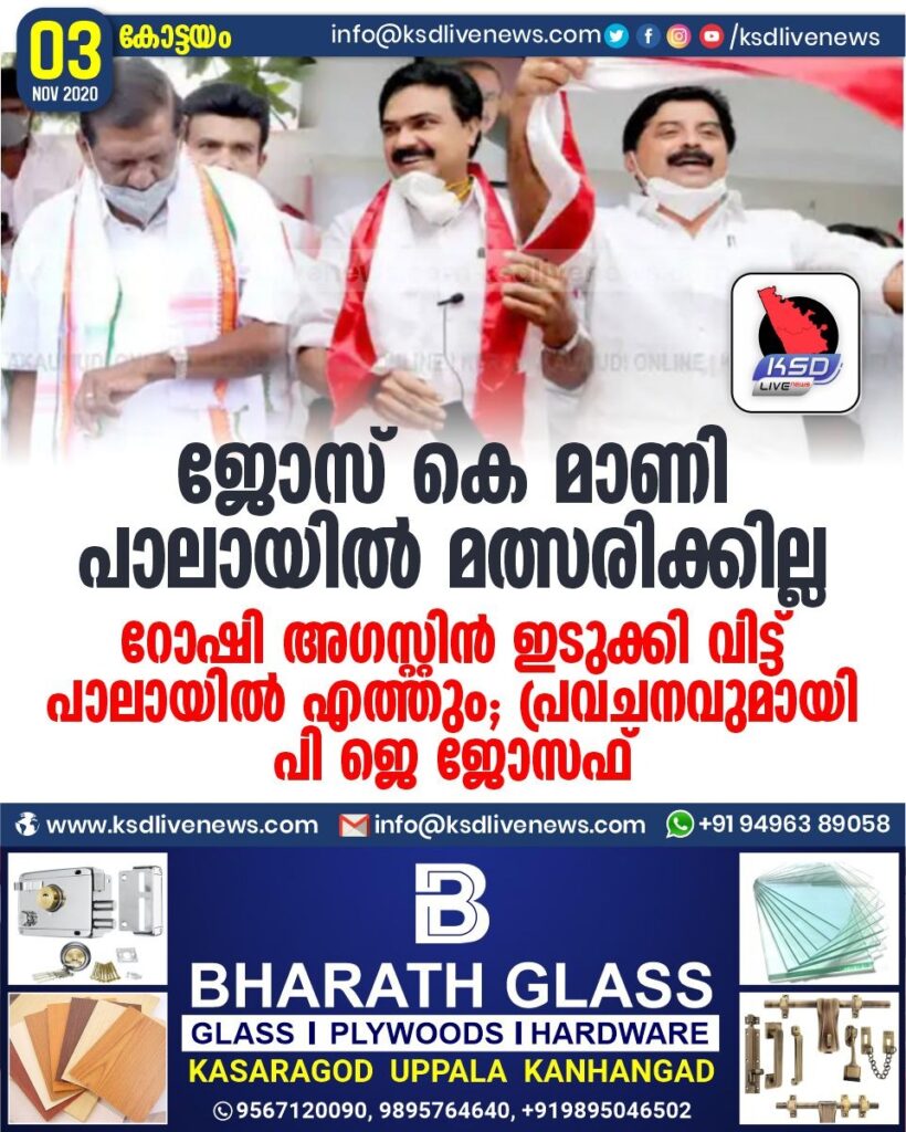 ജോസ് കെ മാണി പാലായിൽ മത്സരിക്കില്ല , റോഷി അഗസ്റ്റിൻ ഇടുക്കി വിട്ട് പാലായിൽ എത്തും ‘ ; പ്രവചനവുമായി പി ജെ ജോസഫ്