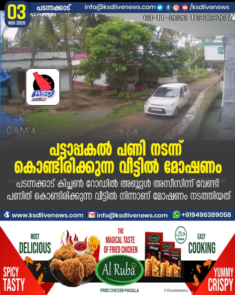 പട്ടാപ്പകൽ പണി നടന്ന് കൊണ്ടിരിക്കുന്ന വീട്ടിൽ മോഷണം