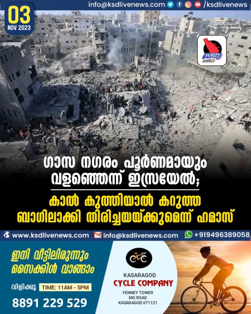 ഗാസ നഗരം പൂർണമായും വളഞ്ഞെന്ന് ഇസ്രയേൽ; കാൽ കുത്തിയാൽ കറുത്ത ബാഗിലാക്കി തിരിച്ചയയ്ക്കുമെന്ന് ഹമാസ്