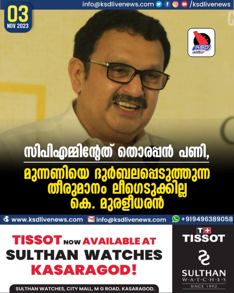 സിപിഎമ്മിന്റേത് തൊരപ്പന് പണി, മുന്നണിയെ ദുര്ബലപ്പെടുത്തുന്ന തീരുമാനം ലീഗെടുക്കില്ല- കെ. മുരളീധരന്