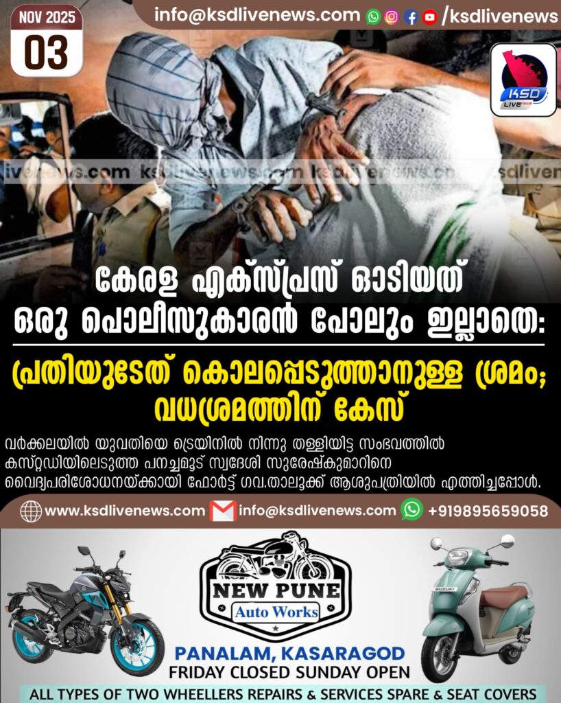 കേരള എക്സ്പ്രസ് ഓടിയത് ഒരു പൊലീസുകാരൻ പോലും ഇല്ലാതെ: പ്രതിയുടേത് കൊലപ്പെടുത്താനുള്ള ശ്രമം; വധശ്രമത്തിന് കേസ്