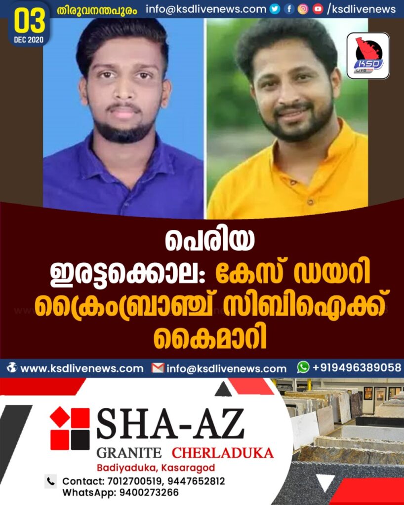 പെരിയ ഇരട്ടക്കൊല: കേസ് ഡയറി ക്രൈംബ്രാഞ്ച് സിബിഐക്ക് കൈമാറി