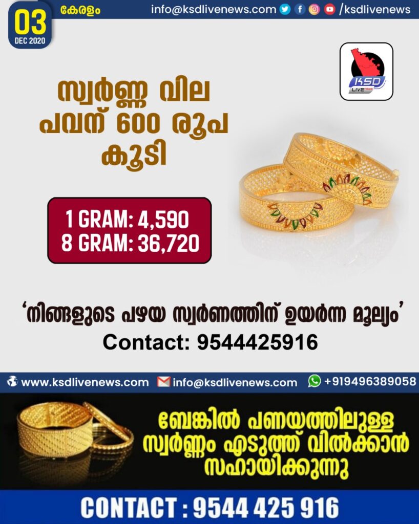 സ്വര്‍ണവില ഒറ്റയടിക്ക് പവന് 600 രൂപകൂടി 36,720 രൂപയായി