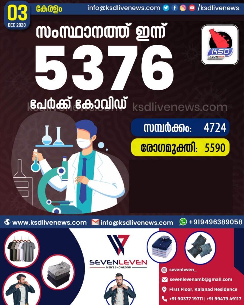 തിരുവനന്തപുരം:ഇന്ന് 5376 പേര്‍ക്ക് കോവിഡ്-19 സ്ഥിരീകരിച്ചു