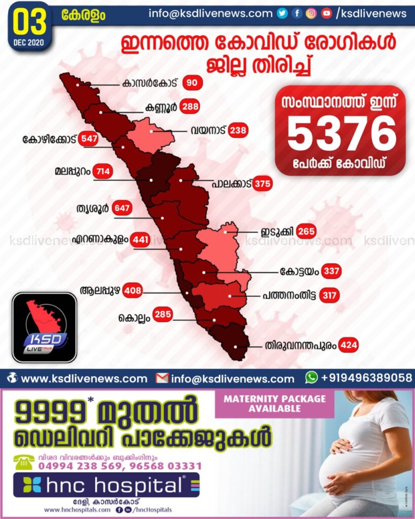 സംസ്ഥാനത്ത് ഇന്ന് കോവിഡ് സ്ഥിരീകരിച്ചവരുടെ ജില്ല തിരിച്ചുള്ള വിവരങ്ങൾ