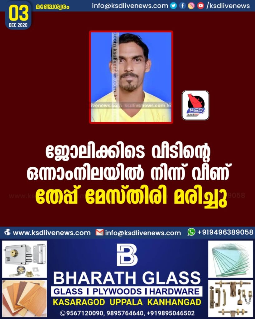 ജോലിക്കിടെ വീടിന്റെ ഒന്നാംനിലയിൽ നിന്ന് വീണ് തേപ്പ് മേസ്തിരി മരിച്ചു